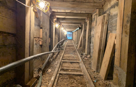As the ultimate client, London Underground Ltd closely scrutinised all documentation and the installation and had particular requirements e.g. regular grouting of the heading timbers as we progressed. Out of Hours working was required by Thames Water to enable them to isolate the water mains above as we passed beneath.