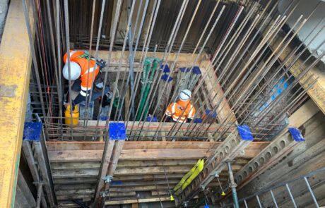 Lack of space made excavating the pumping chamber to TW’s satisfaction very challenging. Two reinforced concrete chambers (one permanent, one temporary) were constructed. The design interfaces involved close collaboraation with the Principal Contractor’s design team and activities were sequenced to shorten programme.
