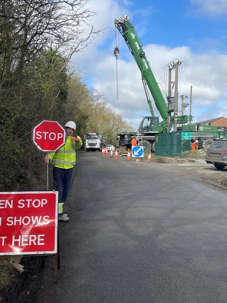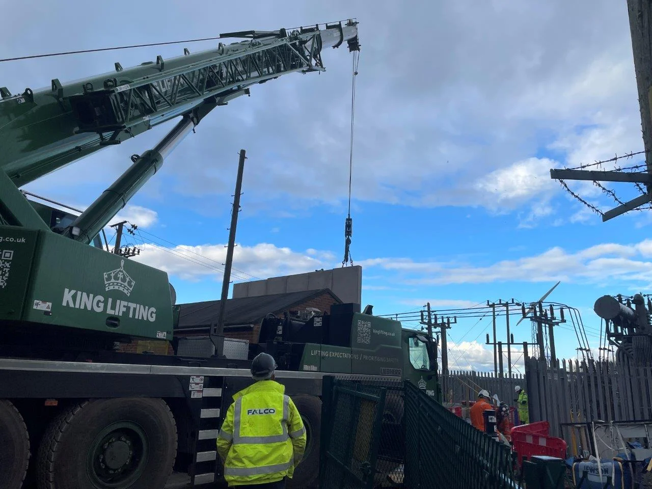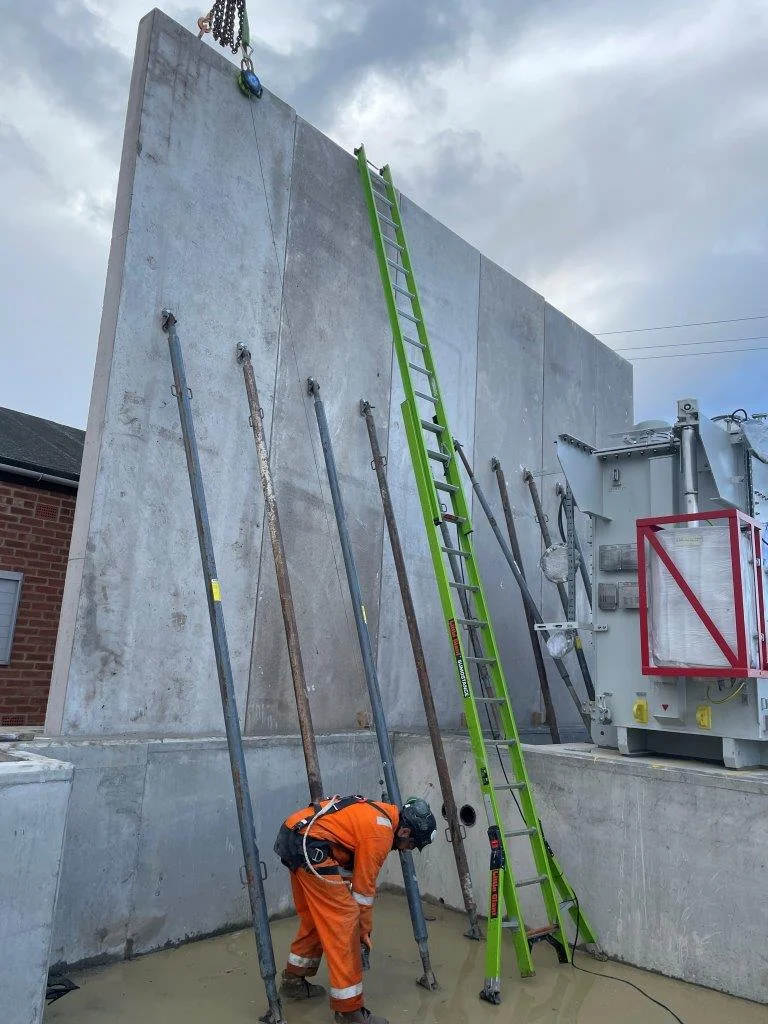 We procured and managed the installation of a 6.5m high precast wall to seprate the existing switch-room from the new transformer. This was facilitated with the planned isolation of existing 11Kva overhead cables, obtaining a crane permit and serving a road opening notice via liaison with Suffolk Highways.