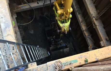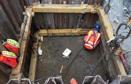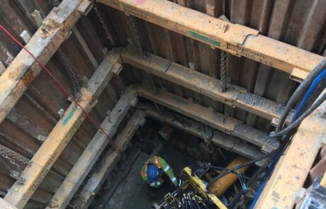 Leveraging our network of contacts from the various Thames Water Departments, and by revising the construction methodology, Falco were able to present an alternative solution that avoided the fibre optic cables and identified good engineering reasons for granting a waiver to the strict policy on direct connections to trunk sewers. Bespoke temporary works designed by Fairhurst were developed to BS5975 and installed by Falco specialist deep excavation teams.
